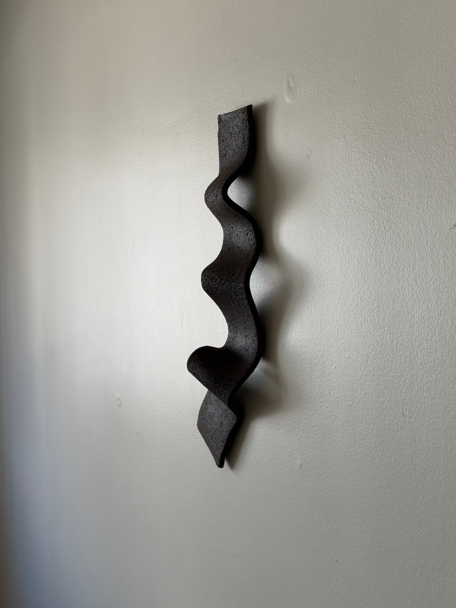 This sculpture is made by hand, following the natural movement of the clay. Its wavy form creates soft shadows and adds a quiet, tactile presence to any space.