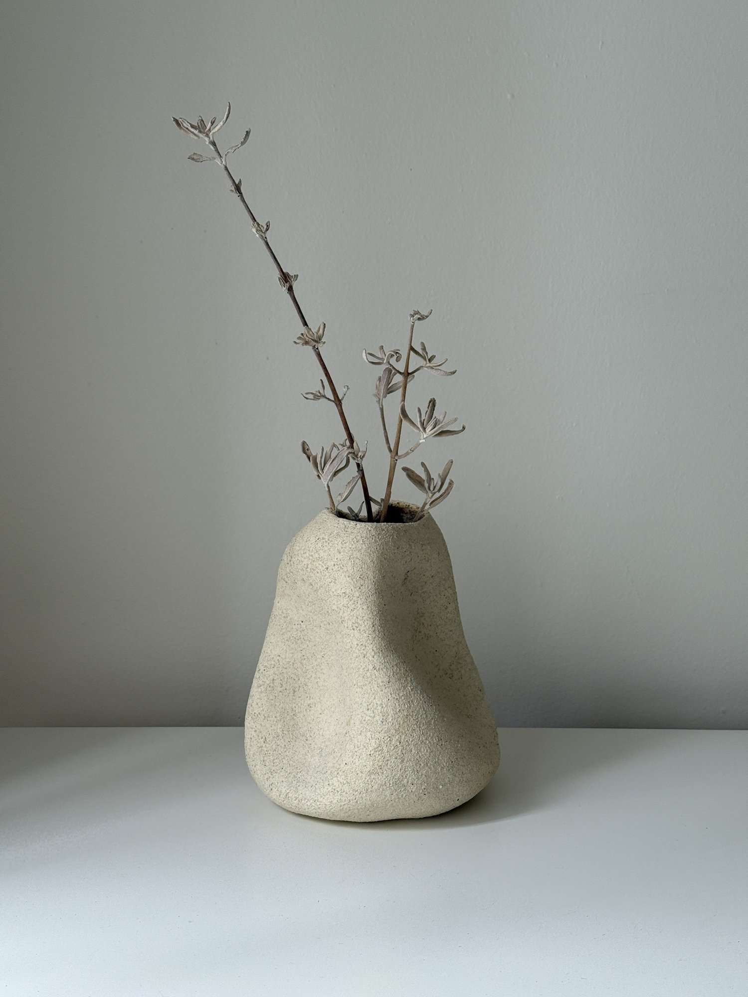 Hand-built white ceramic vase in textured sculptural clay.